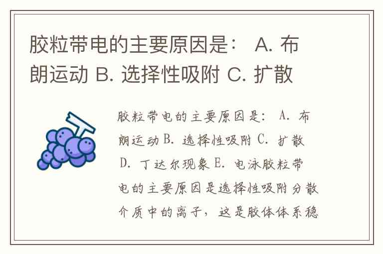 胶粒带电的主要原因是: A. 布朗运动 B. 选择性吸附 C. 扩散 D. 丁达尔现象 E. 电泳