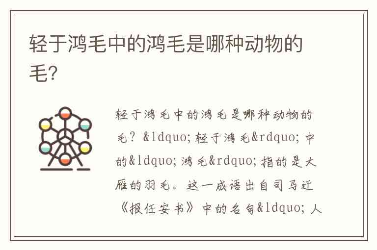 轻于鸿毛中的鸿毛是哪种动物的毛?