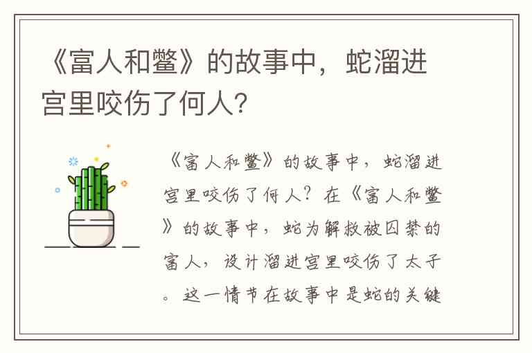 《富人和鳖》的故事中,蛇溜进宫里咬伤了何人?