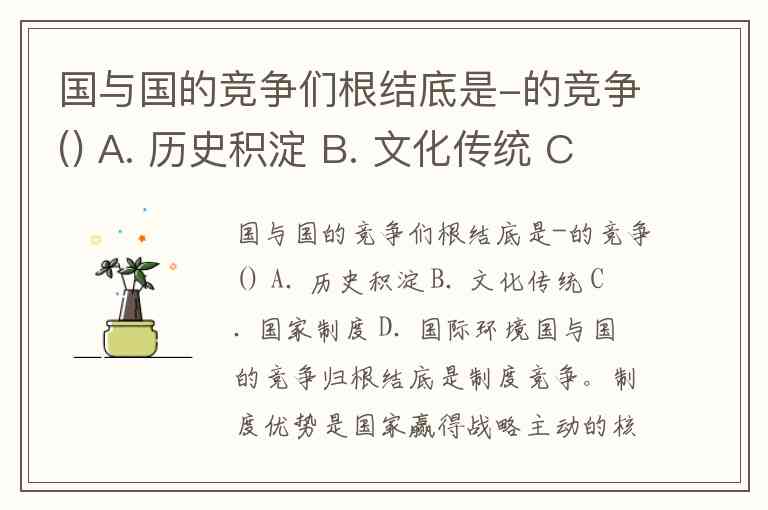 国与国的竞争们根结底是-的竞争() A. 历史积淀 B. 文化传统 C. 国家制度 D. 国际环境