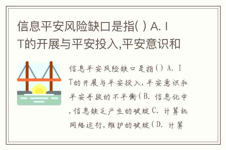 信息平安风险缺口是指( ) A. IT的开展与平安投入,平安意识和平安手段的不平衡( B. 信息化中,信息缺乏产生的破绽 C. 计算机网络运行,维护的破绽( D. 计算中心的火灾隐患