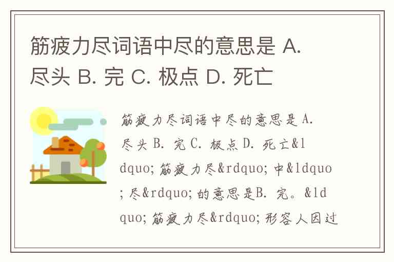 筋疲力尽词语中尽的意思是 A. 尽头 B. 完 C. 极点 D. 死亡