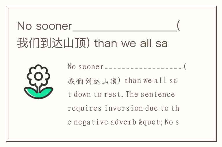 No sooner__________________(我们到达山顶) than we all sat down to rest.