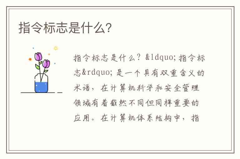 “指令标志”是一个具有双重含义的术语,在计算机科学和安全管理领域有着截然不同但同样重要的应用。