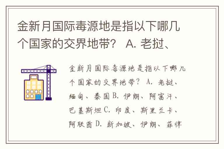 金新月国际毒源地是指以下哪几个国家的交界地带? A. 老挝、缅甸、泰国 B. 伊朗、阿富汗、巴基斯坦 C. 印度、斯里兰卡、阿联酋 D. 新加坡、伊朗、菲律宾