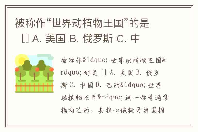 被称作“世界动植物王国”的是 [] A. 美国 B. 俄罗斯 C. 中国 D. 巴西
