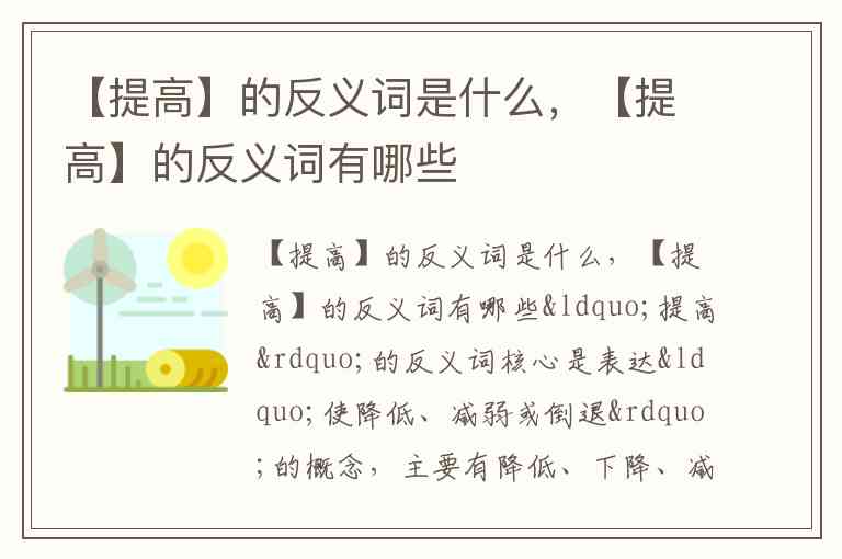 “提高”的反义词核心是表达“使降低、减弱或倒退”的概念,主要有降低、下降、减少、减弱、贬低等,具体使用需结合语境侧重。