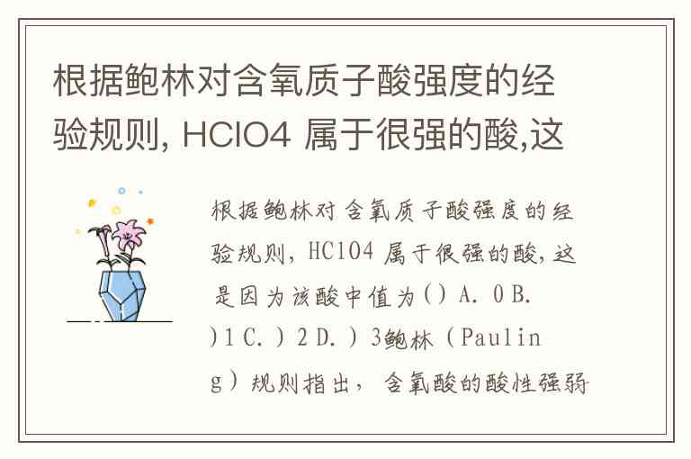 根据鲍林对含氧质子酸强度的经验规则, HClO4 属于很强的酸,这是因为该酸中值为( ) A. 0 B. )1 C. ) 2 D. ) 3