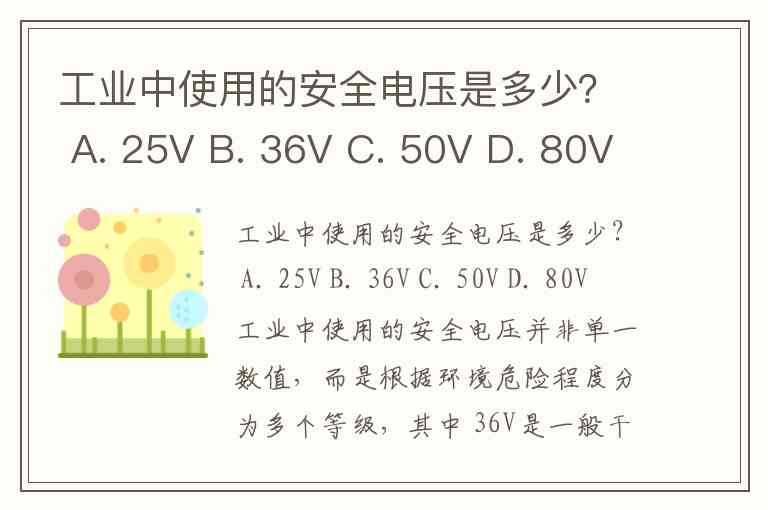 工业中使用的安全电压是多少? A. 25V B. 36V C. 50V D. 80V