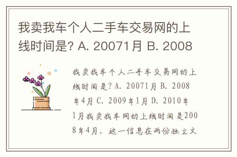 我卖我车个人二手车交易网的上线时间是? A. 20071月 B. 2008年4月 C. 2009年1月 D. 2010年1月