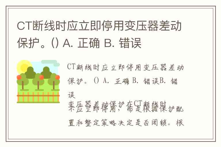 CT断线时应立即停用变压器差动保护。() A. 正确 B. 错误