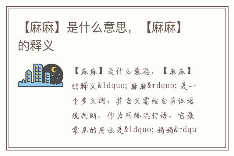 【麻麻】是什么意思,【麻麻】的释义
