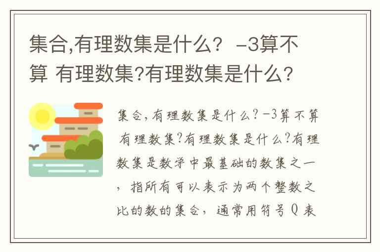 集合,有理数集是什么? -3算不算 有理数集?有理数集是什么?