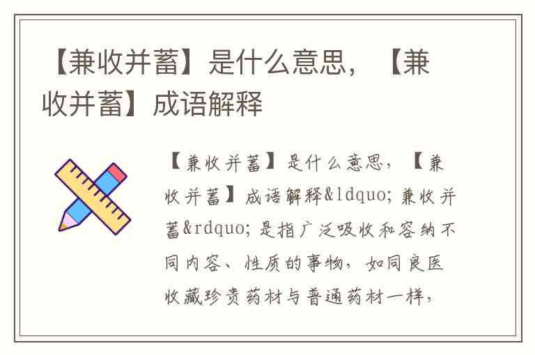【兼收并蓄】是什么意思,【兼收并蓄】成语解释