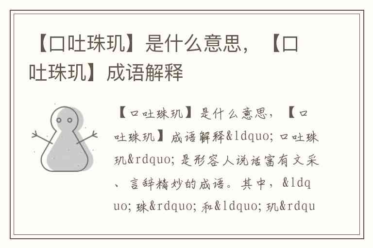 【口吐珠玑】是什么意思,【口吐珠玑】成语解释