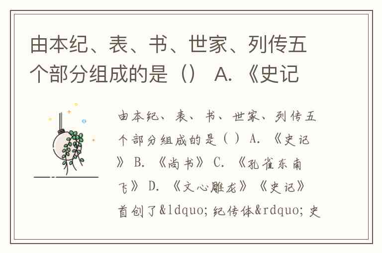 由本纪、表、书、世家、列传五个部分组成的是() A. 《史记》 B. 《尚书》 C. 《孔雀东南飞》 D. 《文心雕龙》