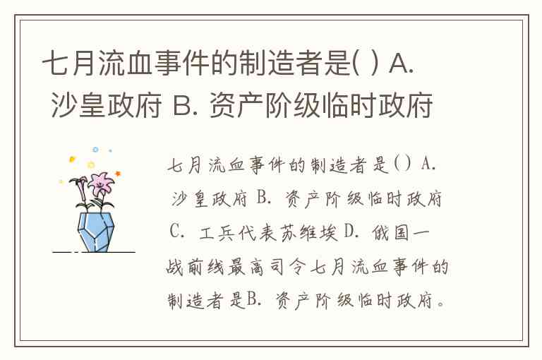 七月流血事件的制造者是( ) A. 沙皇政府 B. 资产阶级临时政府 C. 工兵代表苏维埃 D. 俄国一战前线最高司令