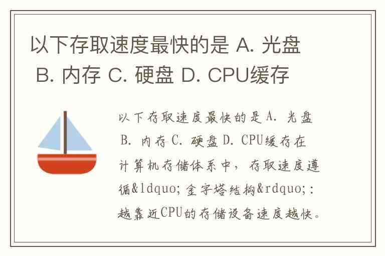 以下存取速度最快的是 A. 光盘 B. 内存 C. 硬盘 D. CPU缓存