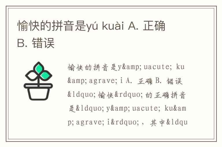 愉快的拼音是yú kuài A. 正确 B. 错误