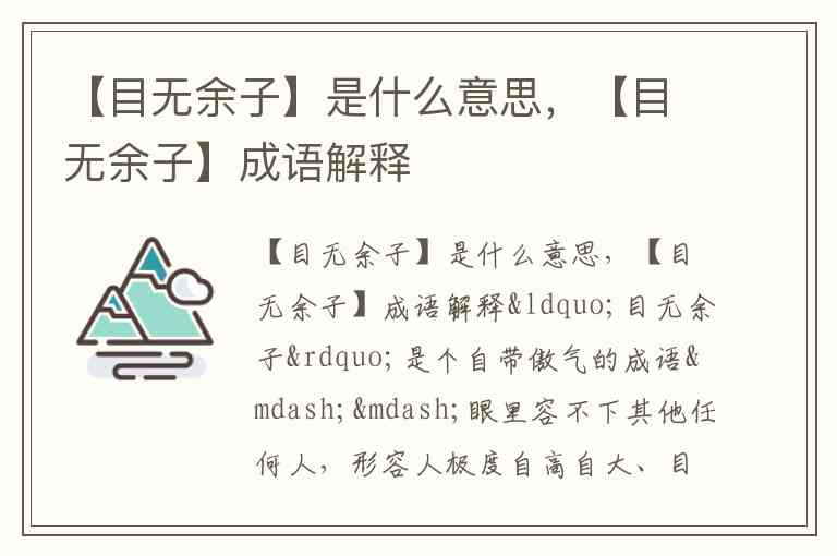 “目无余子”是个自带傲气的成语——眼里容不下其他任何人,形容人极度自高自大、目中无人。这里的“余子”指“其余的人”,整个成语精准勾勒出那种睥睨一切、谁都瞧不上的姿态。