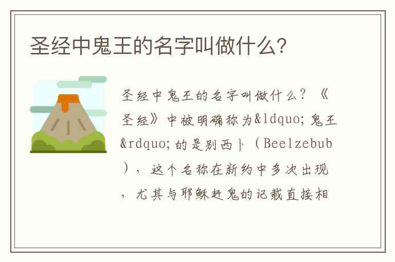 《圣经》中被明确称为“鬼王”的是别西卜(Beelzebub),这个名称在新约中多次出现,尤其与耶稣赶鬼的记载直接相关。其希伯来语原意为“苍蝇之主”(Ba‘al zěbhubh),希腊文写作Beelzeboúl,中文译为“别西卜”,被基督教文献定义为统领鬼魔的存在。