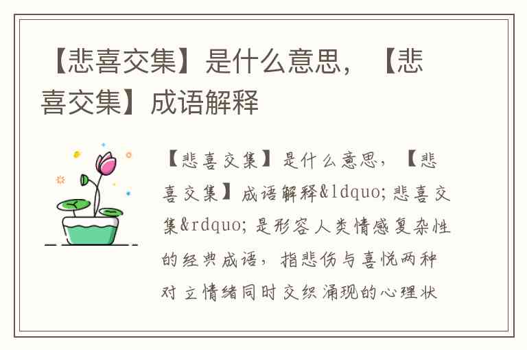 【悲喜交集】是什么意思,【悲喜交集】成语解释