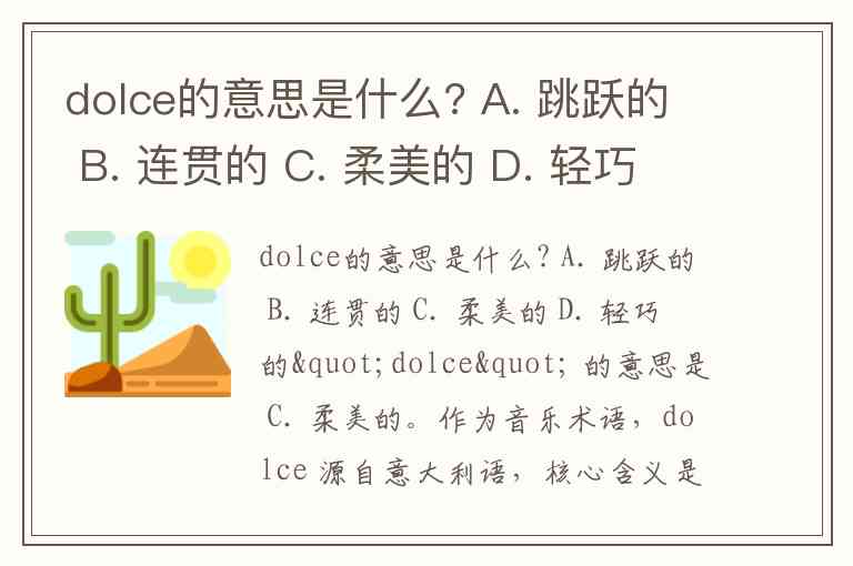 dolce的意思是什么? A. 跳跃的 B. 连贯的 C. 柔美的 D. 轻巧的