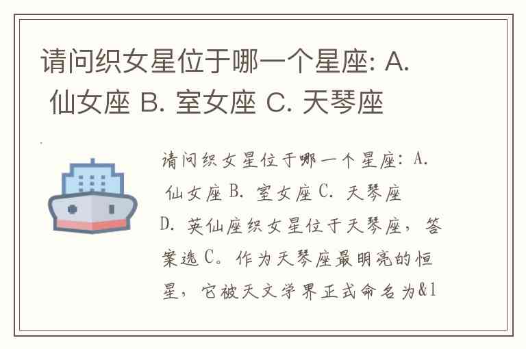 请问织女星位于哪一个星座: A. 仙女座 B. 室女座 C. 天琴座 D. 英仙座
