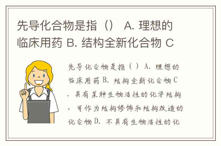 先导化合物是指() A. 理想的临床用药 B. 结构全新化合物 C. 具有某种生物活性的化学结构,可作为结构修饰和结构改造的化合物 D. 不具有生物活性的化合物