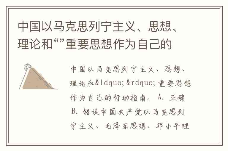 中国以马克思列宁主义、思想、理论和“”重要思想作为自己的行动指南。 A. 正确 B. 错误