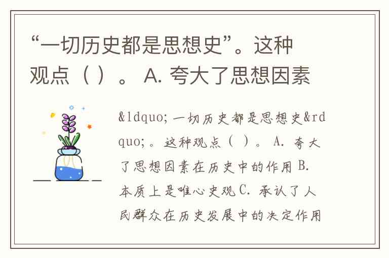 “一切历史都是思想史”。这种观点( )。 A. 夸大了思想因素在历史中的作用 B. 本质上是唯心史观 C. 承认了人民群众在历史发展中的决定作用 D. 肯定了历史发展的客观规律性