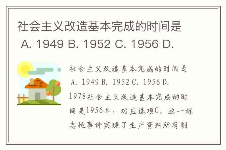 社会主义改造基本完成的时间是 A. 1949 B. 1952 C. 1956 D. 1978