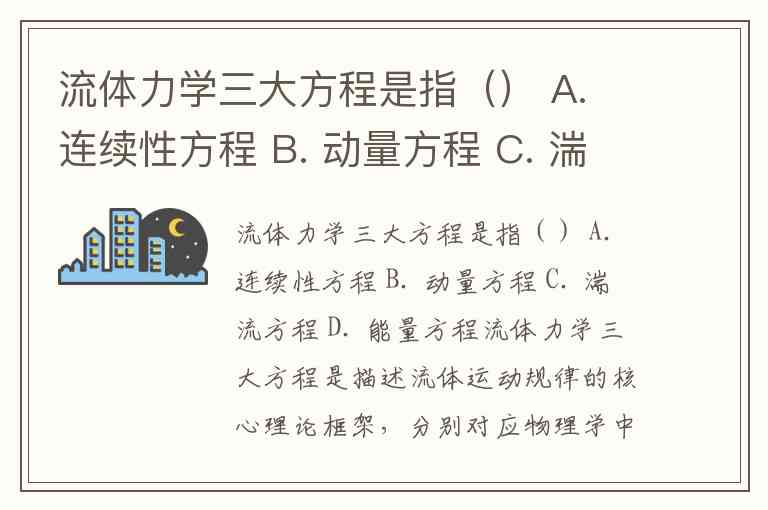 流体力学三大方程是指() A. 连续性方程 B. 动量方程 C. 湍流方程 D. 能量方程