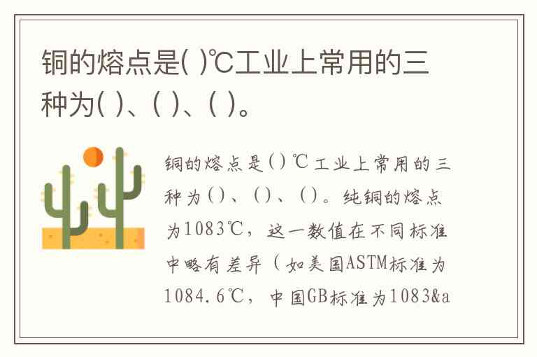 铜的熔点是( )℃工业上常用的三种为( )、( )、( )。
