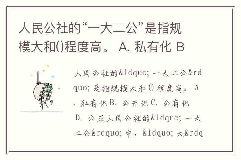 人民公社的“一大二公”是指规模大和()程度高。 A. 私有化 B. 公开化 C. 公有化 D. 公正