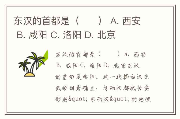 东汉的首都是( ) A. 西安 B. 咸阳 C. 洛阳 D. 北京