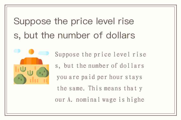 Suppose the price level rises, but the number of dollars you are paid per hour stays the same. This means that your A. nominal wage is higher. B. nominal wage is lower. C. real wage is higher. D. real wage is lower.