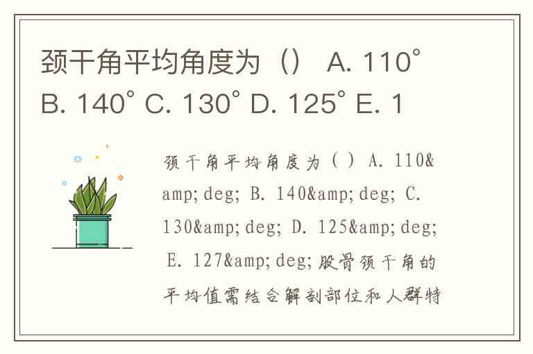 颈干角平均角度为() A. 110° B. 140° C. 130° D. 125° E. 127°
