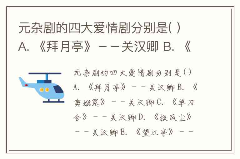题目选项中未出现的《倩女离魂》(郑光祖),通过张倩女灵魂出窍追随爱人的奇幻情节,将相思之苦具象化为文学想象,与前三部共同构成元代爱情剧的多元表达——或写实批判,或浪漫抒情,或奇幻夸张。值得注意的是,部分文献曾将马致远《汉宫秋》列入“四大爱情剧”,但该剧以昭君出塞的历史悲剧为核心,更接近“四大悲剧”范畴(传统四大悲剧为《窦娥冤》《汉宫秋》《梧桐雨》《赵氏孤儿》),故未被广泛采纳为爱情剧代表。