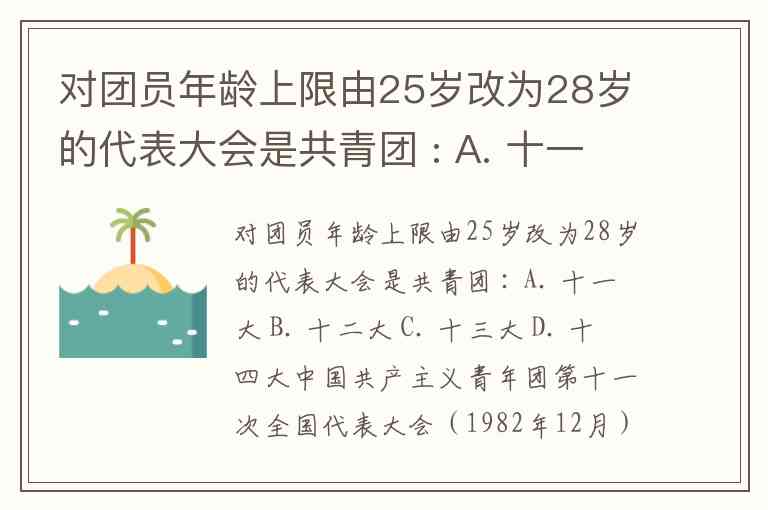 对团员年龄上限由25岁改为28岁的代表大会是共青团 : A. 十一大 B. 十二大 C. 十三大 D. 十四大