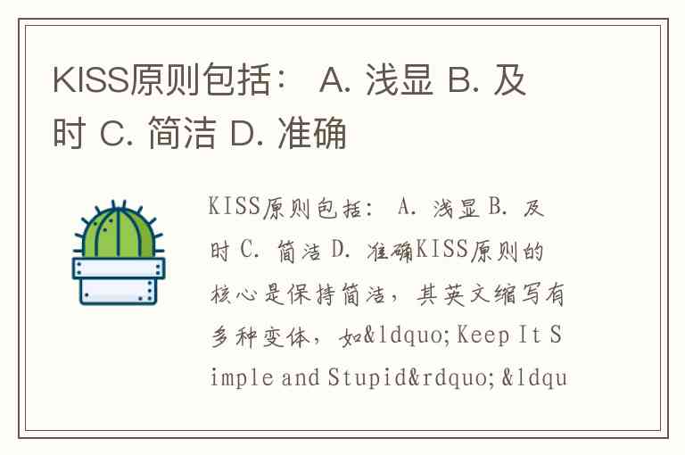 KISS原则包括: A. 浅显 B. 及时 C. 简洁 D. 准确