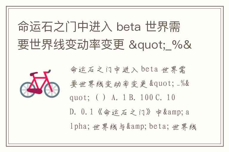 命运石之门中进入 beta 世界需要世界线变动率变更 "_%"() A. 1 B. 100 C. 10 D. 0.1