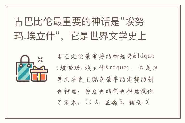 不过严格来说,更早的苏美尔神话已包含创世元素,《埃努玛·埃立什》实际是对苏美尔创世思想的继承与发展。因此题干中"现存最早"的表述不够严谨。答案:B.错误