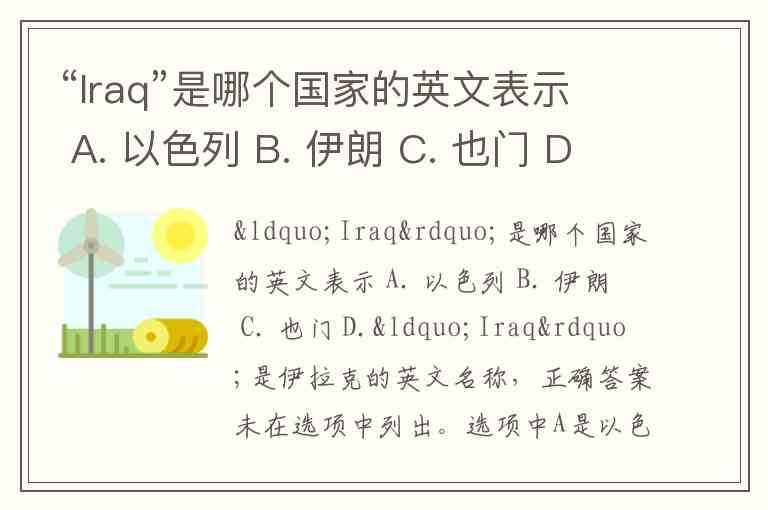 “Iraq”是哪个国家的英文表示 A. 以色列 B. 伊朗 C. 也门 D.