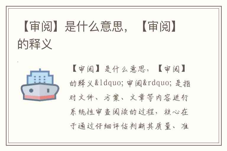 “审阅”是指对文件、方案、文章等内容进行系统性审查阅读的过程,核心在于通过仔细评估判断其质量、准确性和适用性,并可能提出修改意见。这一行为兼具“审”(审查评估)与“阅”(阅读理解)的双重属性,既要求理解内容,又需要专业判断,常见于工作场景中对材料质量的把控环节。