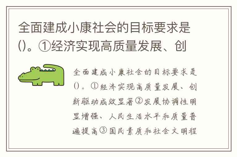 全面建成小康社会的目标要求涵盖经济、社会、文化、生态和制度五个维度,题目中①②③④均为其核心内容。根据十八届五中全会通过的“十三五”规划建议,这些目标在十六大、十七大基础上进一步深化,形成了系统性要求:经济领域强调“高质量发展”与“创新驱动成效显著”,通过深入实施创新驱动发展战略,推动科技与经济深度融合,全要素生产率明显提高;发展协调性方面,要求消费对经济增长贡献加大、城镇化质量改善、区域协调发展格局基本形成;民生与文化领域明确“人民生活水平和质量普遍提高”“国民素质和社会文明程度显著提高”,体现以人民为中心的发展思想;生态与制度层面则聚焦“生态环境质量总体改善”和“各方面制度更加成熟更加定型”,为国家治理现代化奠定基础。