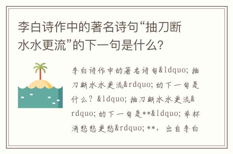 李白诗作中的著名诗句“抽刀断水水更流”的下一句是什么?