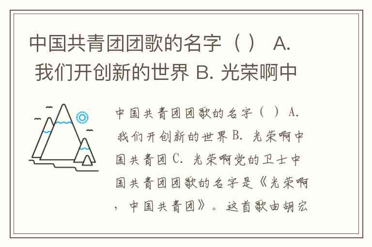 中国共青团团歌的名字( ) A. 我们开创新的世界 B. 光荣啊中国共青团 C. 光荣啊党的卫士