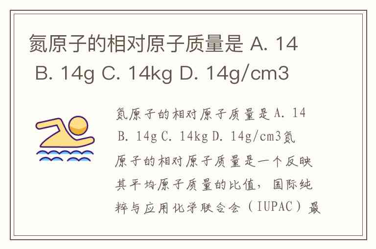 氮原子的相对原子质量是 A. 14 B. 14g C. 14kg D. 14g/cm3