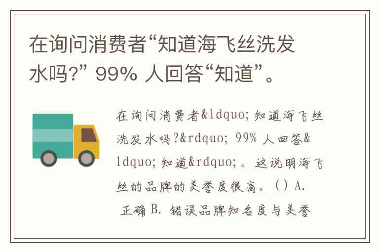 在询问消费者“知道海飞丝洗发水吗?” 99% 人回答“知道”。这说明海飞丝的品牌的美誉度很高。( ) A. 正确 B. 错误
